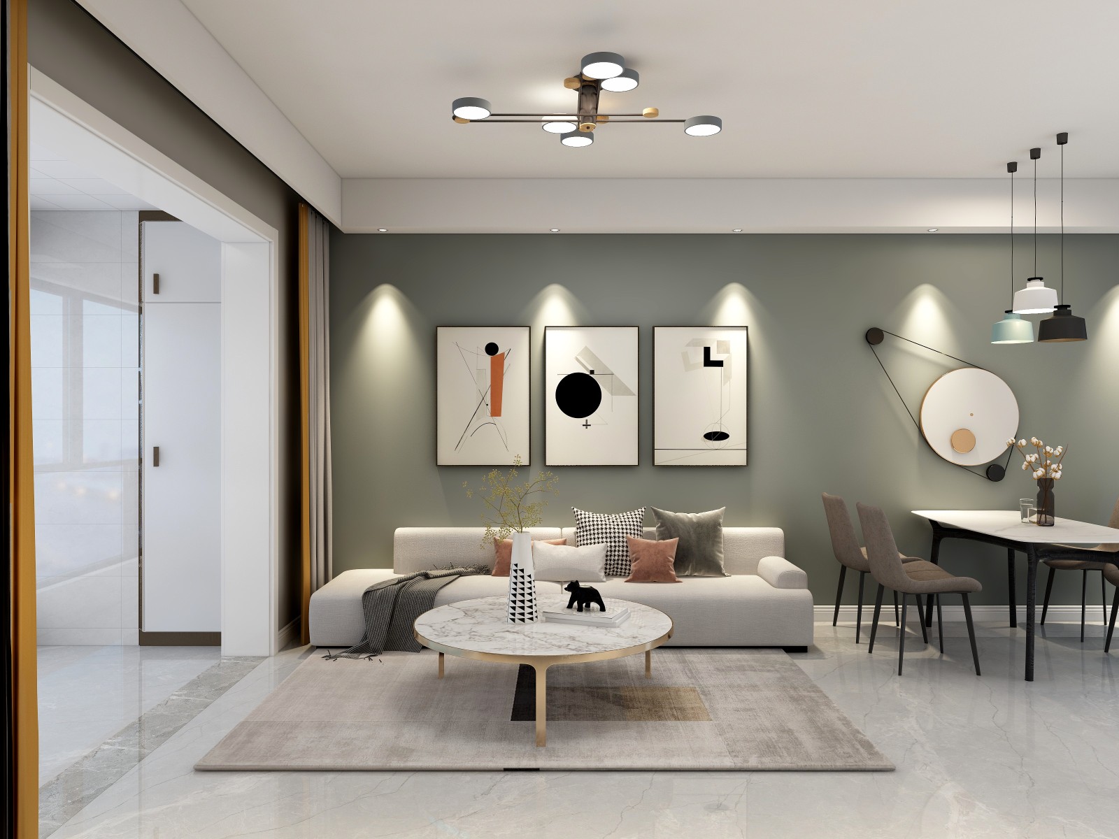 沙发背景墙,利用乳胶漆调色,拉开与电视墙的视觉距离