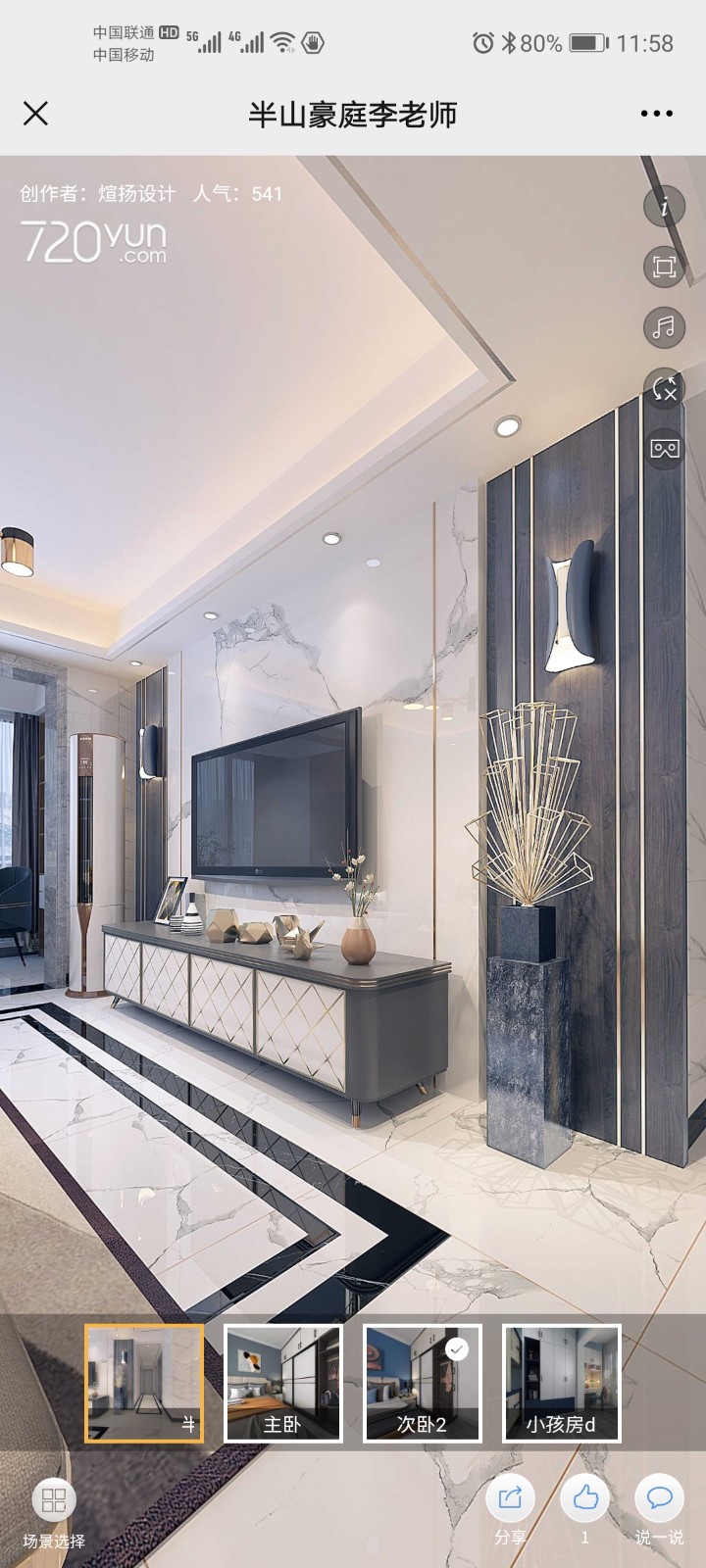 客厅背景采用岩板与木饰面结合,简单且时尚