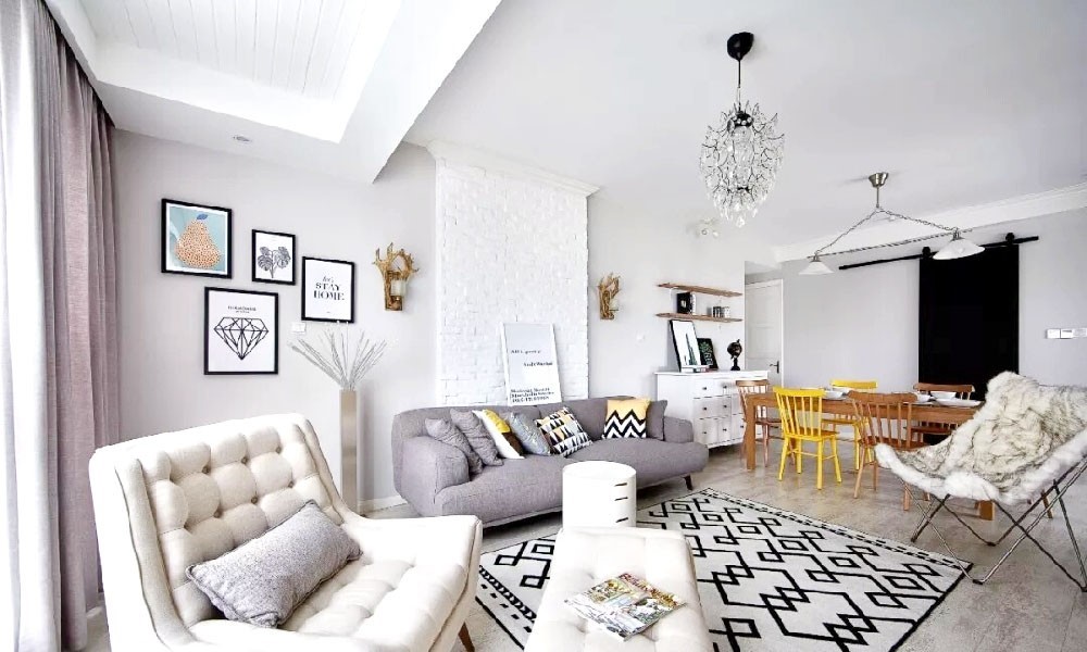这是一套110㎡现代简约三居室的案例。因为房子本身空间不大,所以要把空间充分利用起来。首先在墙体颜色上利用浅色,突出明亮的感觉,也显得空间开阔些。所以在餐桌方面选择体积小的,够两三个人吃饭就可以。厨房也采用半开放式厨房,利用一扇半高的墙,既隔断了两个功能区,又能在拿菜的很方便,视野也要开阔些。