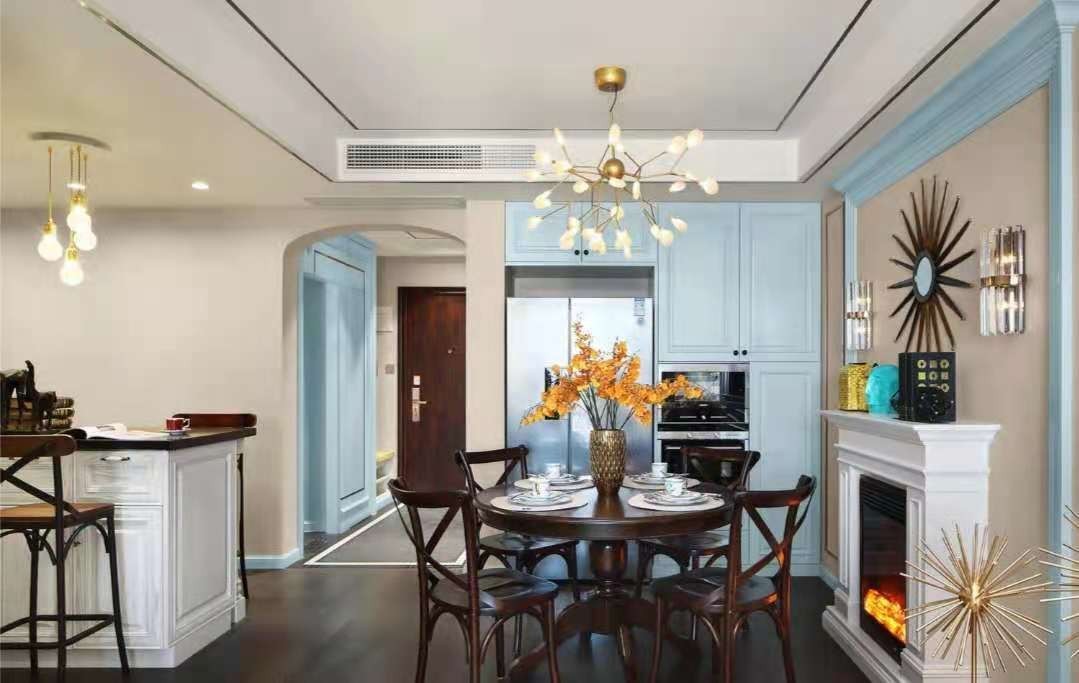 厨房的空间相对于大一些,所以做了吧台的设计,典型的美式厨房