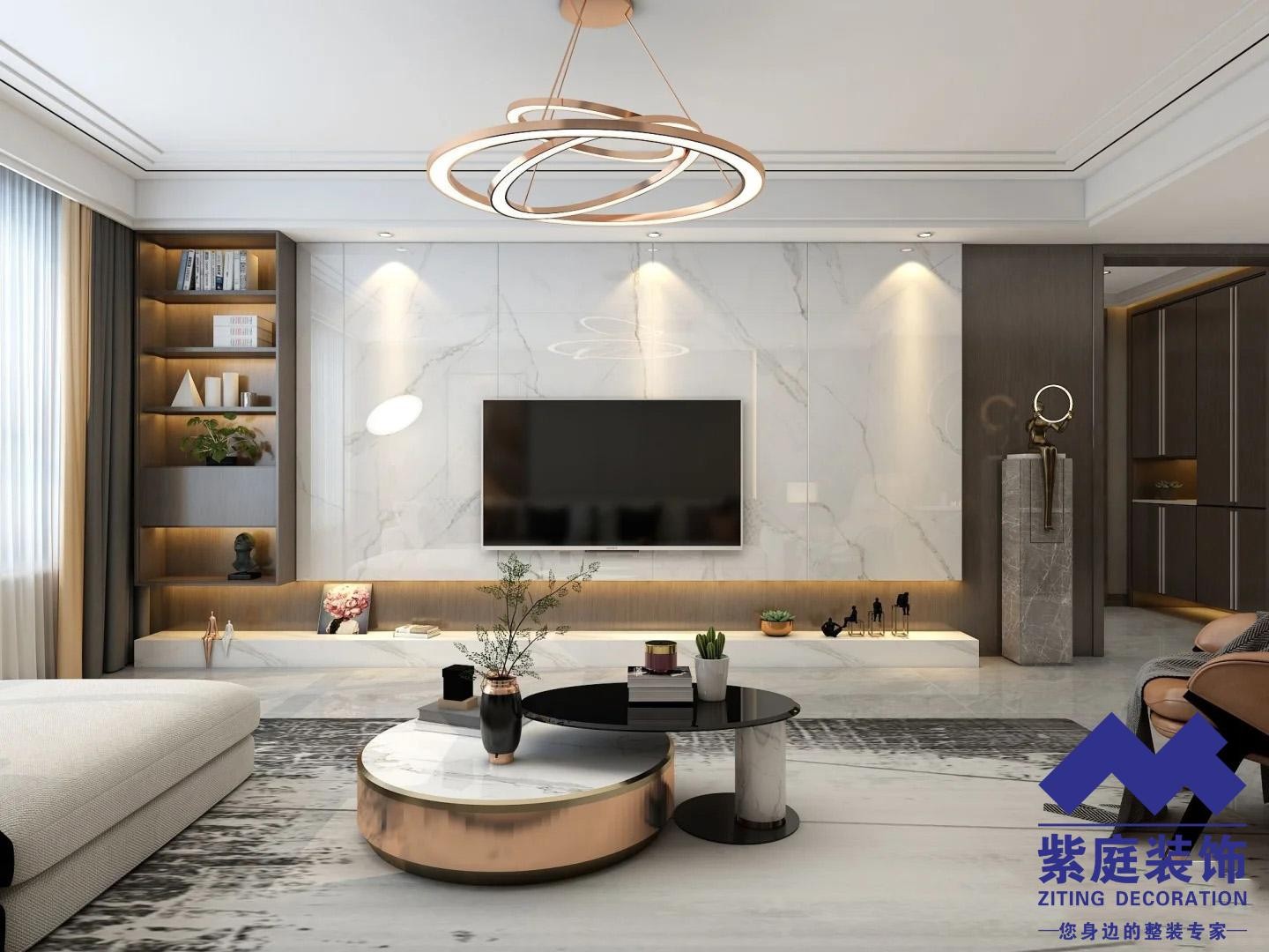 从而达到色彩繁与简之间的平衡,再搭配金属饰品、素色装饰画,以及简约的艺术品,拼凑出现代、舒适、惬意的放松空间。