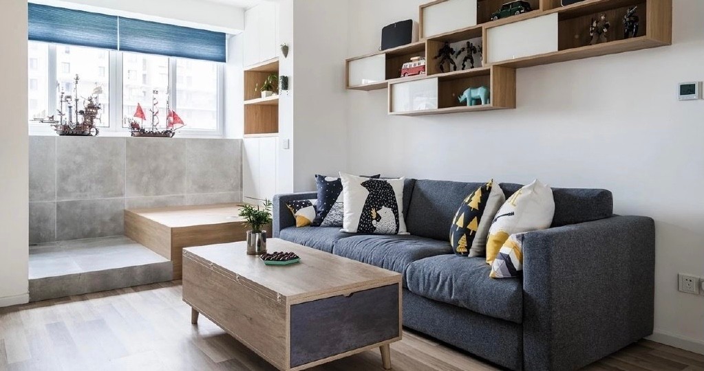 北欧现代简约风格,空间增加海蓝色配色。