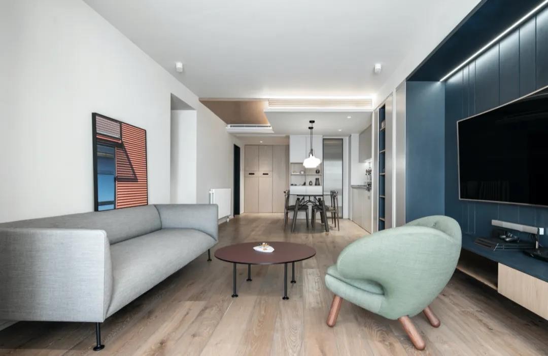 客厅深蓝色烤漆搭白色乳胶漆墙面