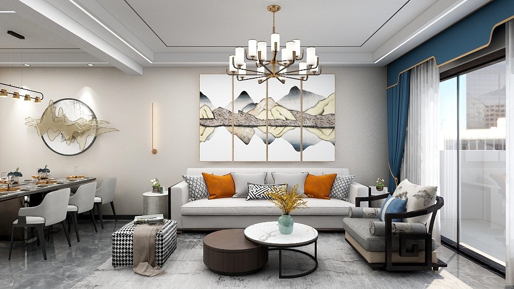 本户型120个平方,客户要求新中式风格,主要是古典元素与现代元素相结合。