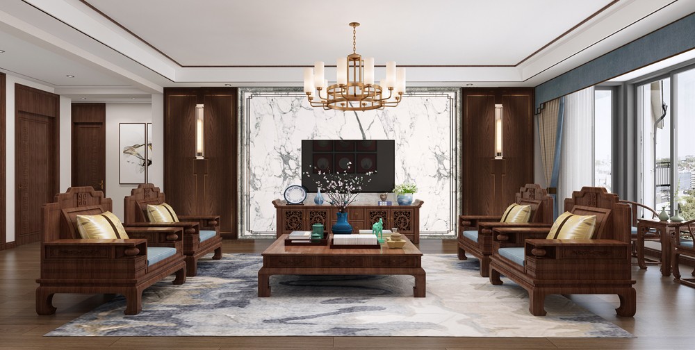 中广尚城9号楼180平米三室两厅大户型中式风格