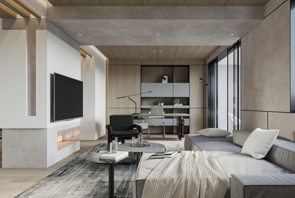 以灰色为基调,选择同色系硬装材质来对空间进行统一