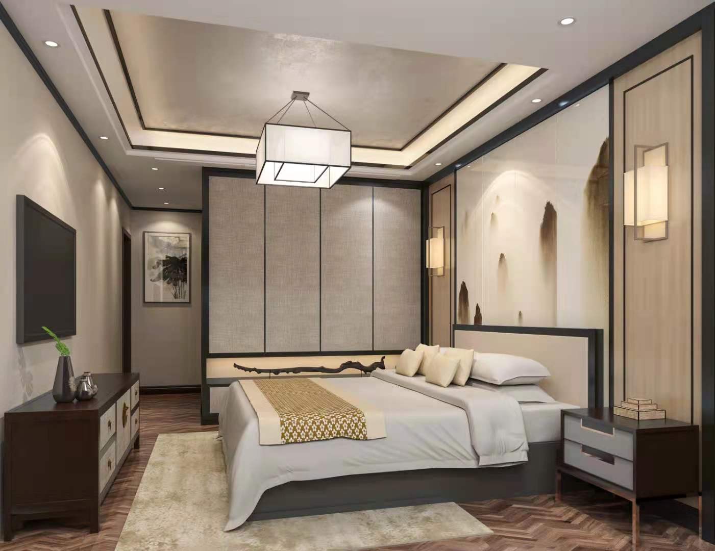 黑色的边框收口起到了一个很好的美观度和空间感将中式的韵味给体现出来了。