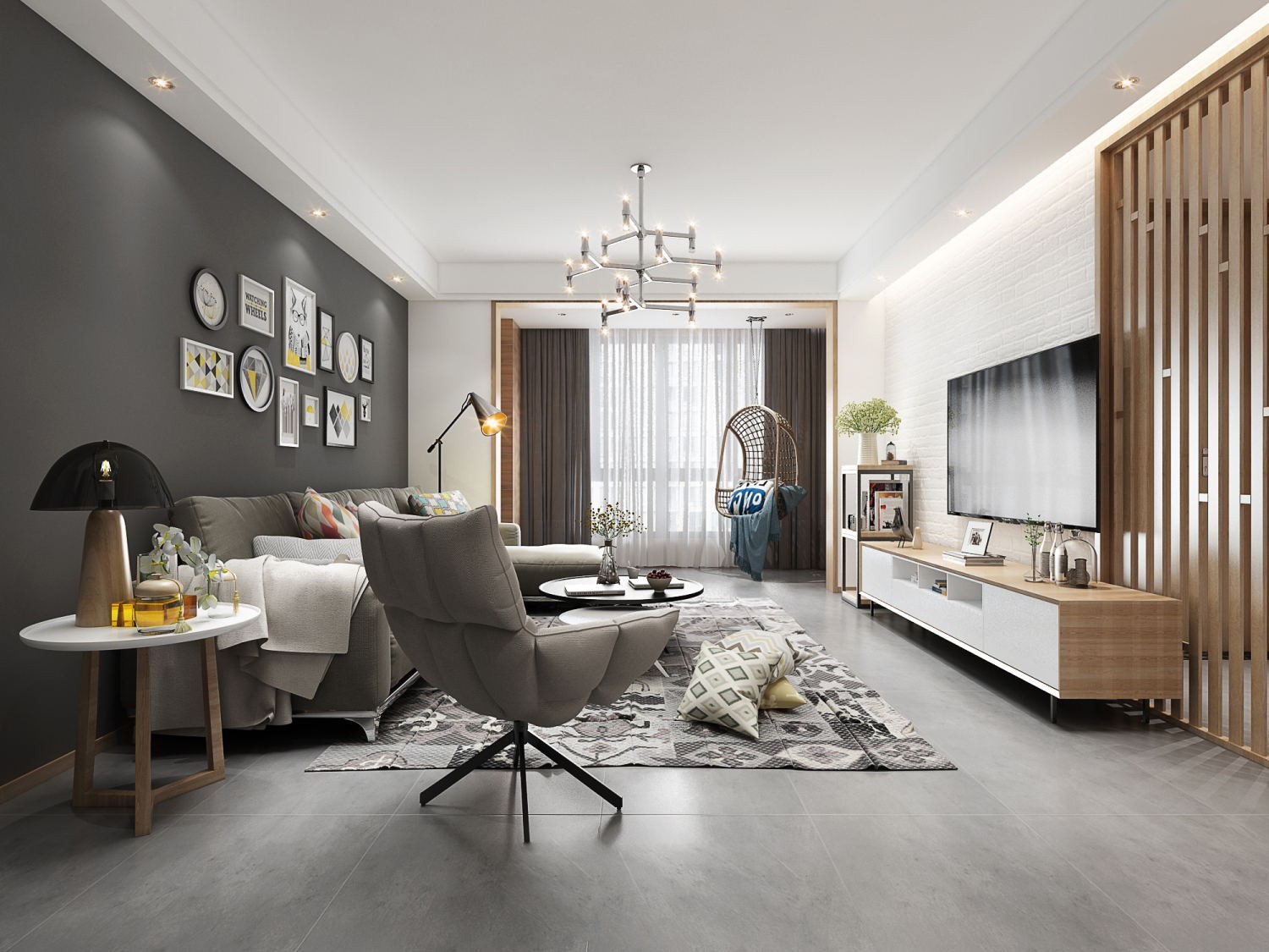 营造家人的亲近空间,让客厅中变得多元,丰富且充满戏剧性,并结合木皮的温润与水泥的质朴,烘托出素雅的空间气氛,给予人心境的安定与富足。