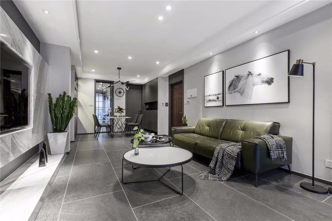 客厅平了吊顶,没有主灯,但用了很多点光源,虽然没有大吊灯那么华丽,但是光照更均匀柔和,也更有场景感。