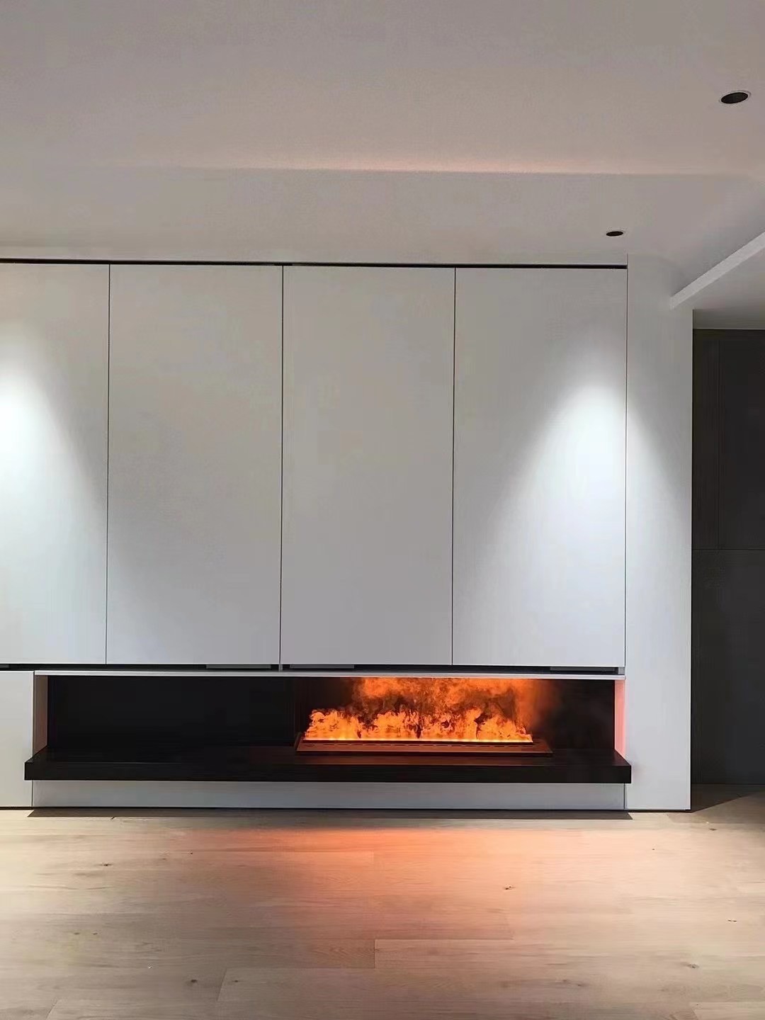 白的优雅,黑的大气,二者之间设计开放柜,底部用白色大理石衔接在一起,既是单独的颜色分割,又均衡了视觉的对比。