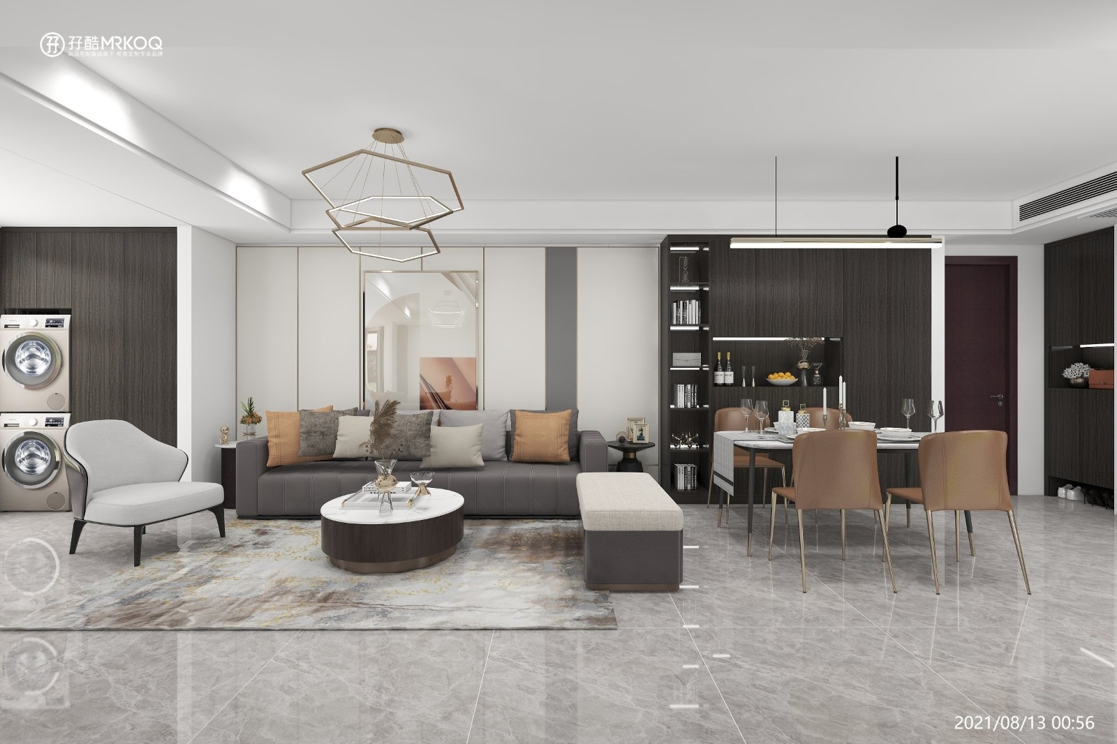 在柜体组合设计上虚实结合,充分考虑了收纳跟展示功能