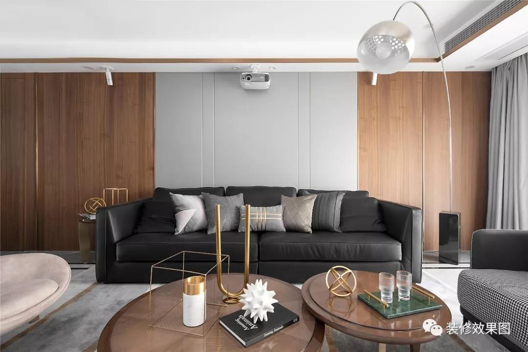 床头背景墙依旧层次感非常丰富,密拼木饰面、金属折板、硬包的搭配极具个性,拒绝雷同。