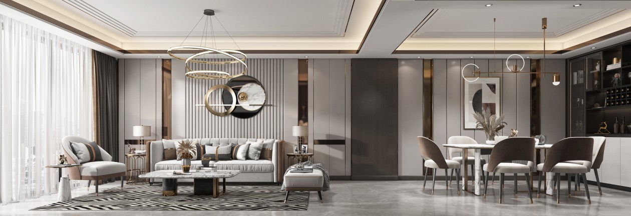 深刻挖掘现代人的审美需求与生活方式,摈弃一切冗余,保留最核心的设计表达,运用皮革、大理石、哑光拉丝金属等材质,营造出一种现代+轻奢的居家氛围,给居住者带来极简、雅致的居住体验。