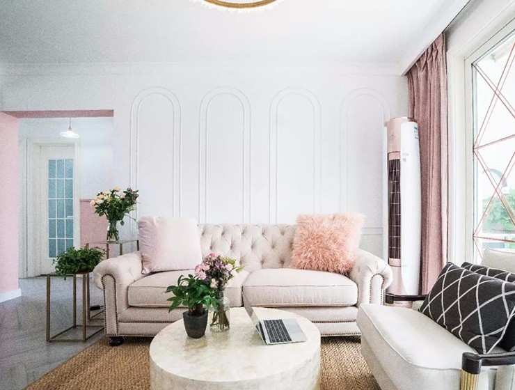 本案是一套面积为82平米的混搭风三居,这里有鲜花、绿植和宁静的粉色,一个充满童话色彩的居住空间