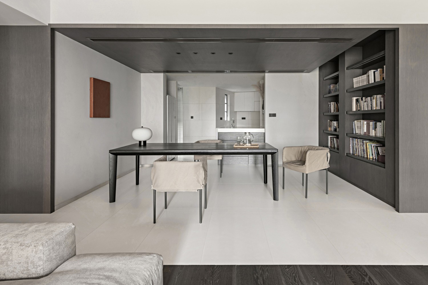 深色重肌理的木饰面,为空间注入了质朴的感受,宁静且舒适。