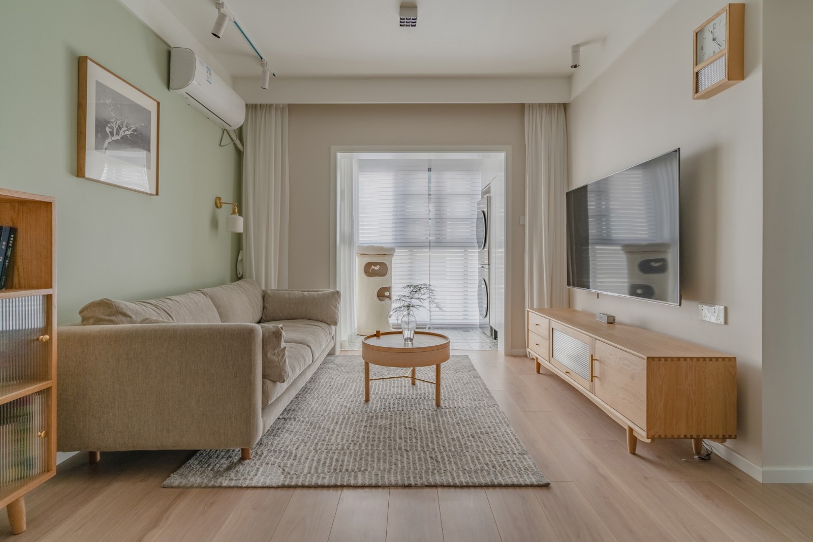 《猫肥家润》起自业主妈妈为女儿入住新家书写的书法作品,幽默又饱含着对女儿未来生活的满满祝福与期待!原来户型是比较常规的两房,但对于业主的需求来讲都有不太合理的地方,于是设计师将结合需求进行了整体的结构改造。小姐姐对于日式的温暖柔和的质感非常喜欢还记得当时沟通时特意截取了喜欢的日剧中的片段给设计师看喜欢的感觉,想要日式风格但又不想太过于拘束可以加入一些复古的元素,让禅意的日式能够有一抹不一样的温柔。