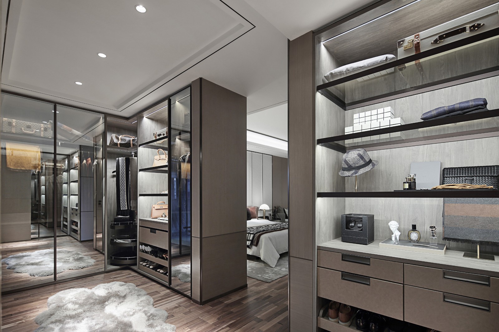 主卧独立的衣帽间设计优化布局,具有更衣和强大的收纳系统,提升生活的舒适度和便捷性。衣柜将男女衣帽进行分离,互不干扰,使其尽显奢华与品质。