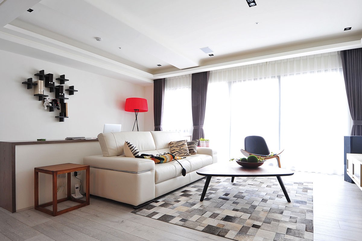 客厅主要以白色为主,白色沙发搭配淡雅清新的地毯,日式风味油然而生。