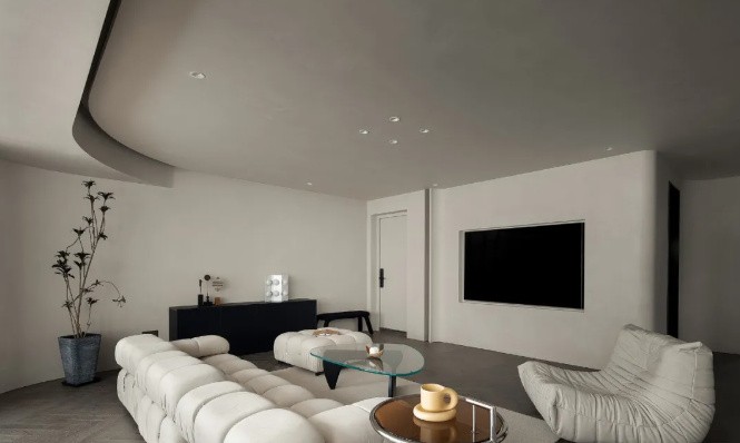 以弧形结构过渡横梁与转角,增添艺术氛围也柔和了空间