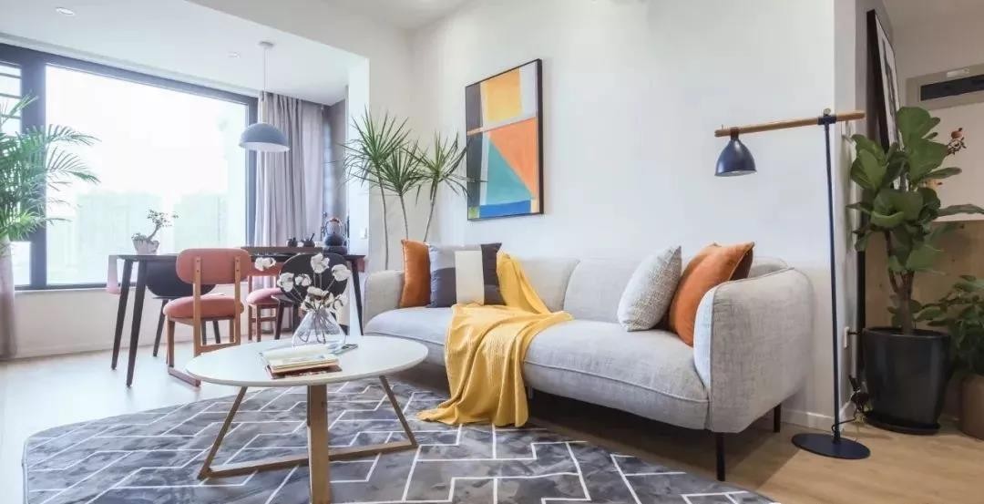 客厅北欧风格,极简装饰画,餐桌靠窗
