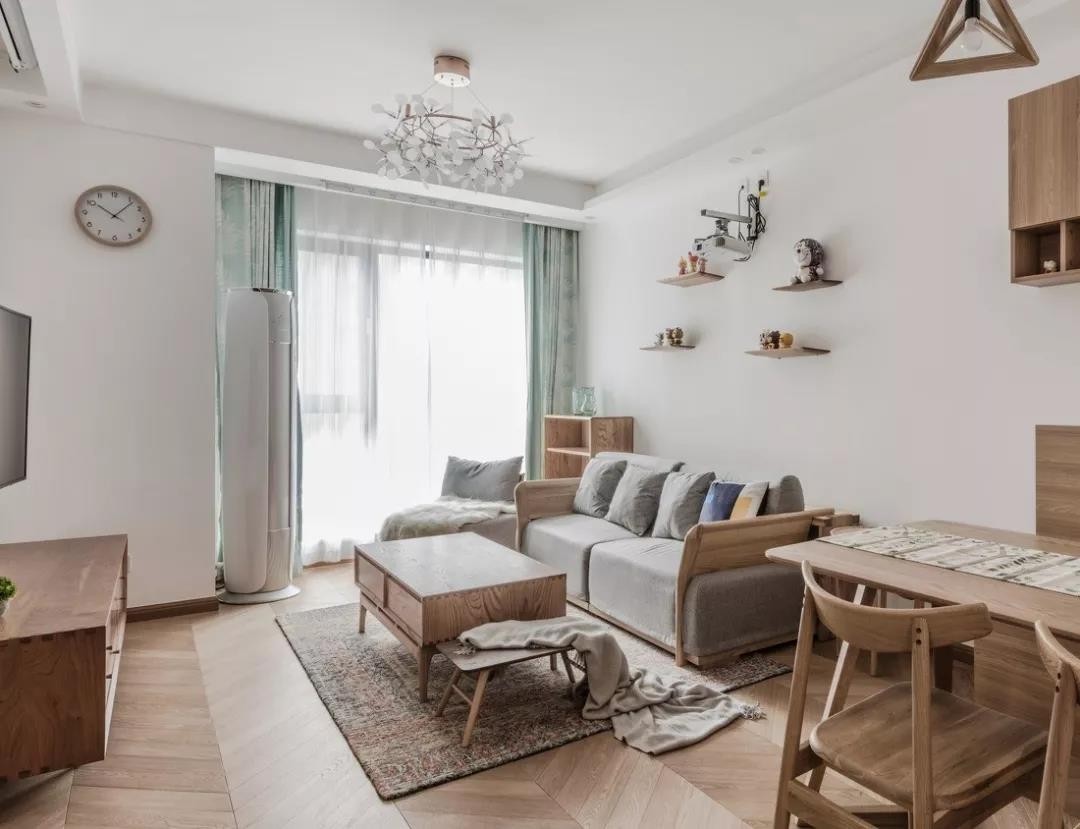 主体风格为日式宜家风,设计师以白色为底,搭配原木风的家具,来打造这样一个舒适、温馨的小窝,虽然房子不大,但住下一家三口刚刚好。