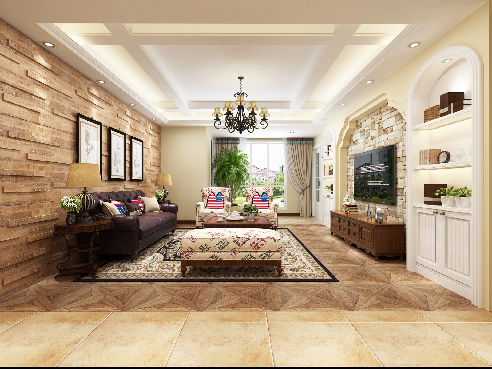 简单的墙面造型加上经典的田园美式吊顶
