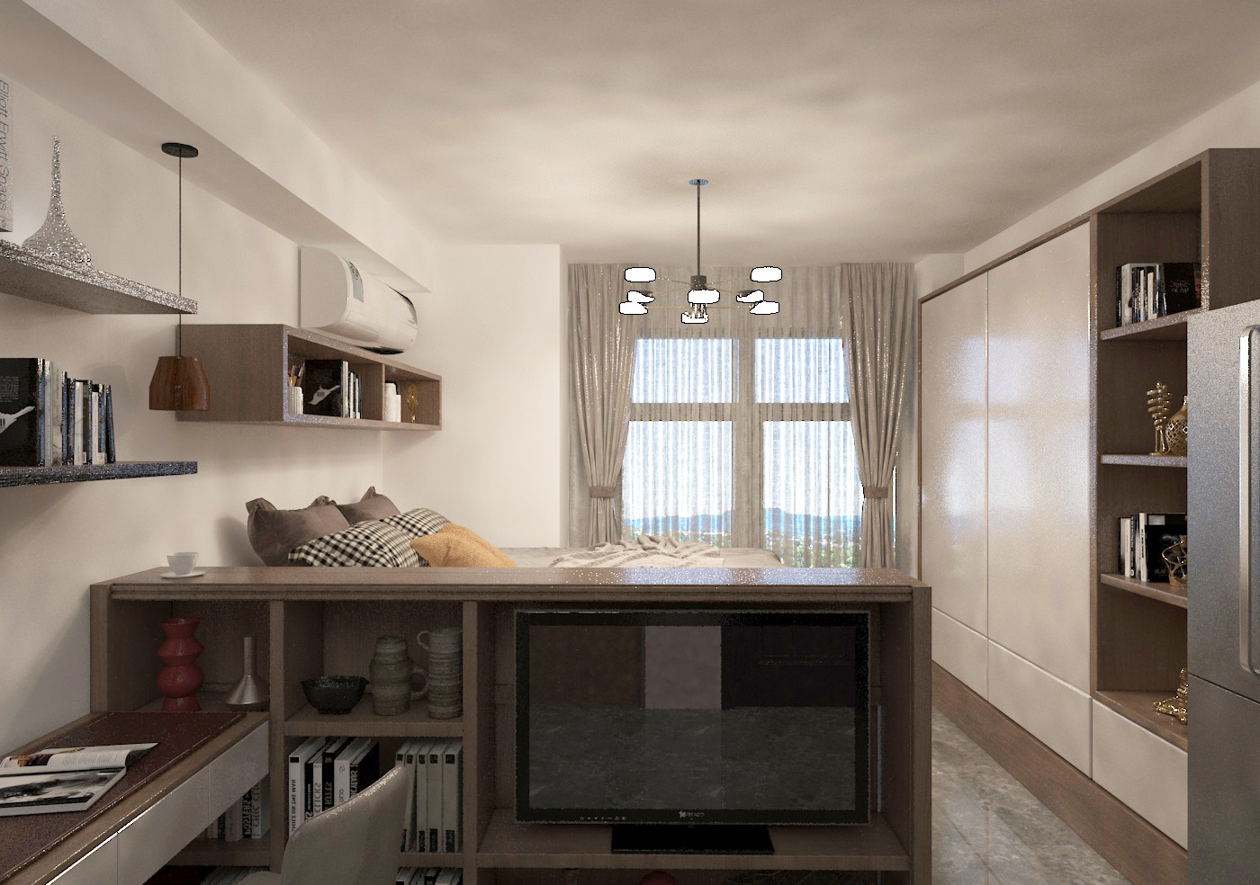 公寓 房屋面积小,通风不便,比较难扩展储物功能,根据全屋定制,增加空间利用率,功能完善却不显杂乱