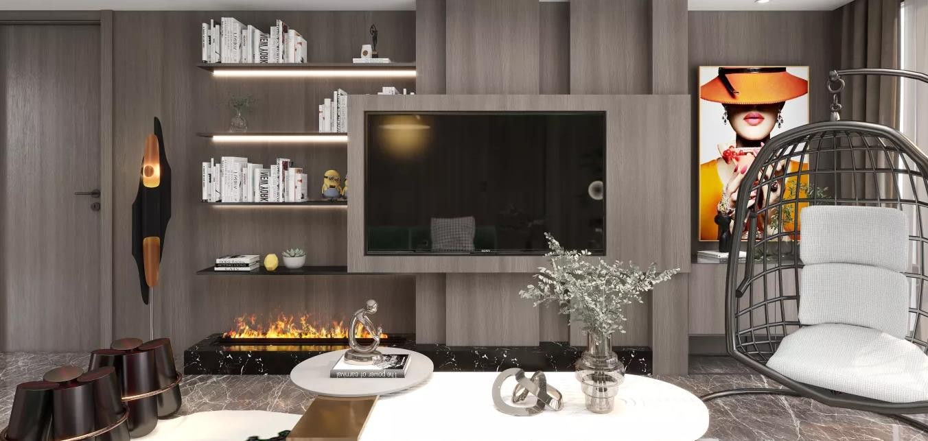 客厅适以暖色的低饱和度材质调色,温馨而不浮夸。