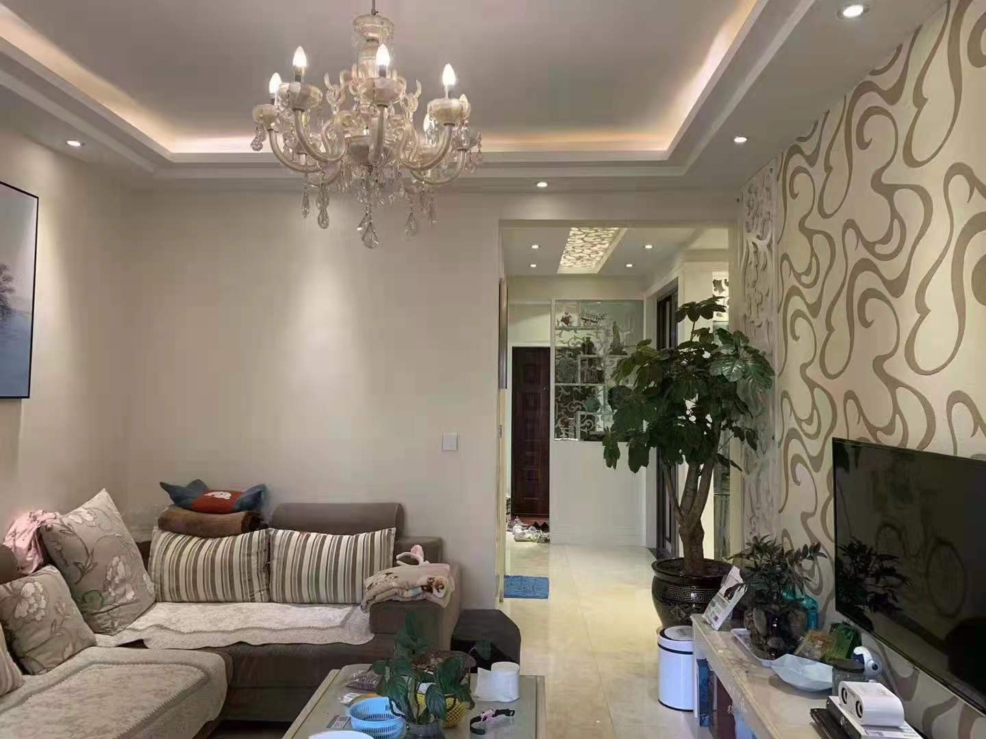 简洁大方,背景墙为墙纸