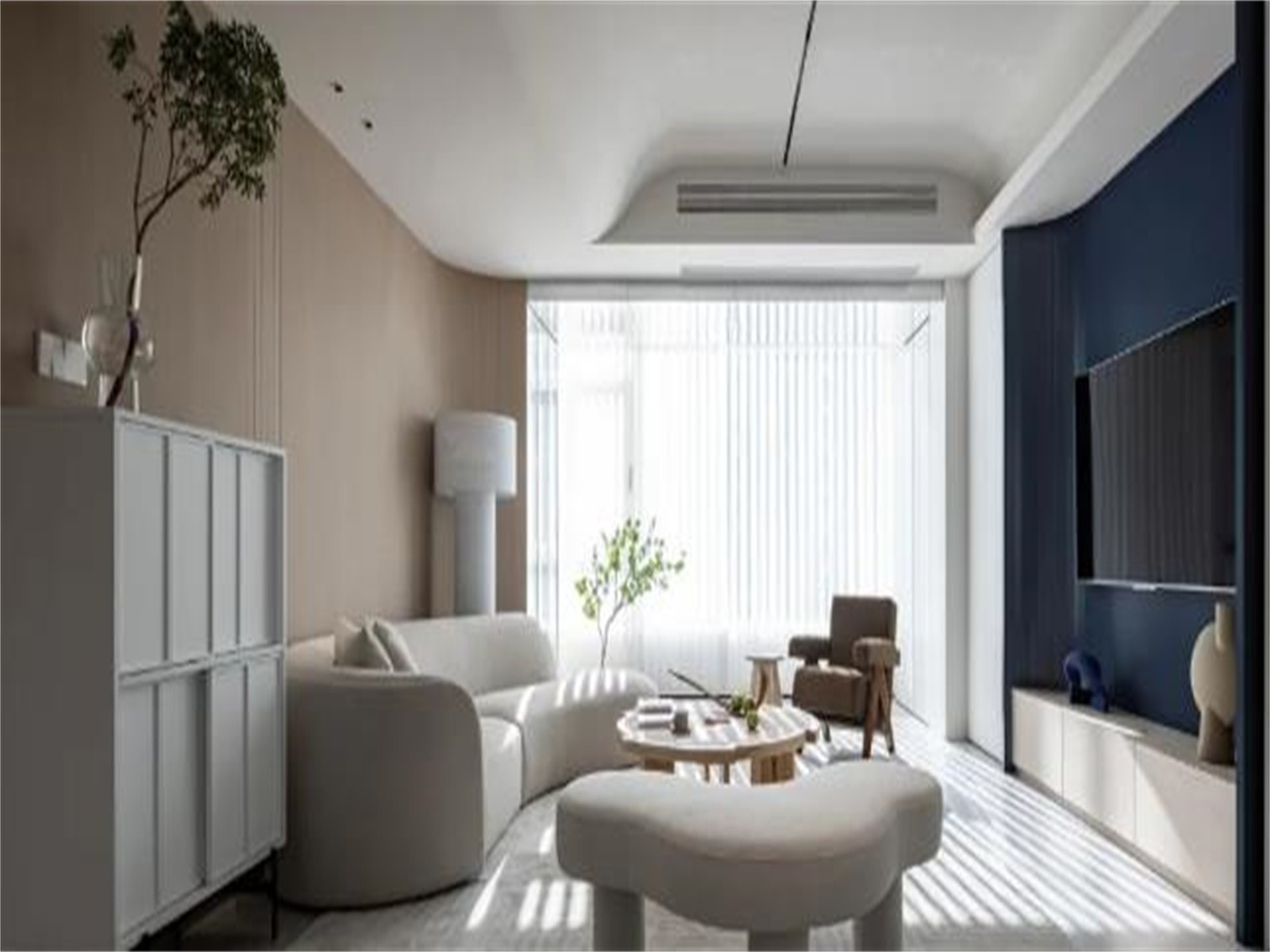 客厅纳入阳台,提升使用面积与采光,弧形元素遍布在空间各个角落,自带***感和艺术氛围