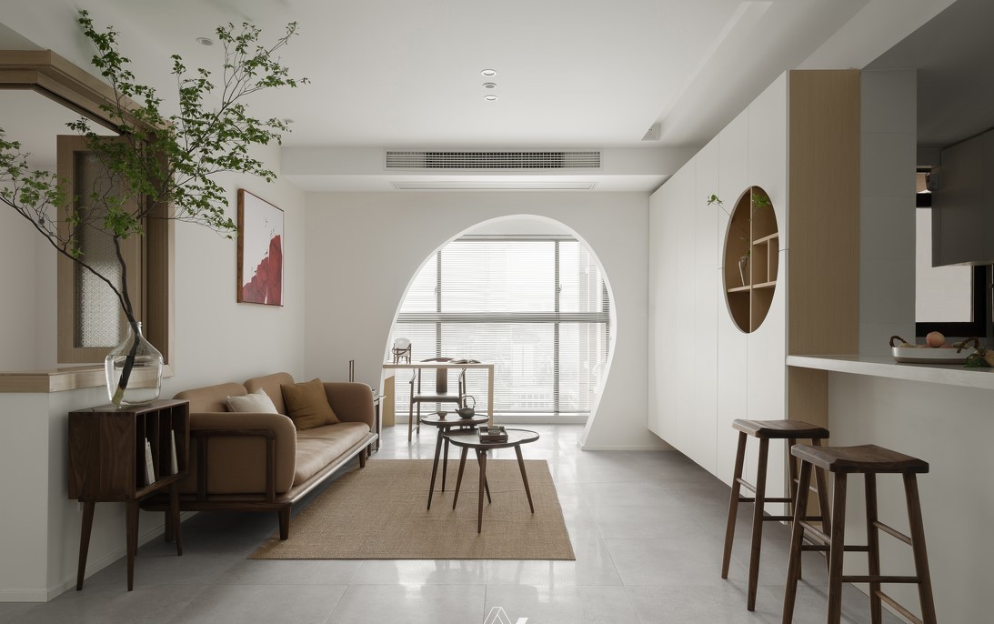 白墙、素砖,干净通透。 硬装的木作采用原木色+白色,软装则用黑胡桃深色提升质感。 深+浅,轻+重的形式,空间的层次像写意画的笔触在宣纸上晕染开。