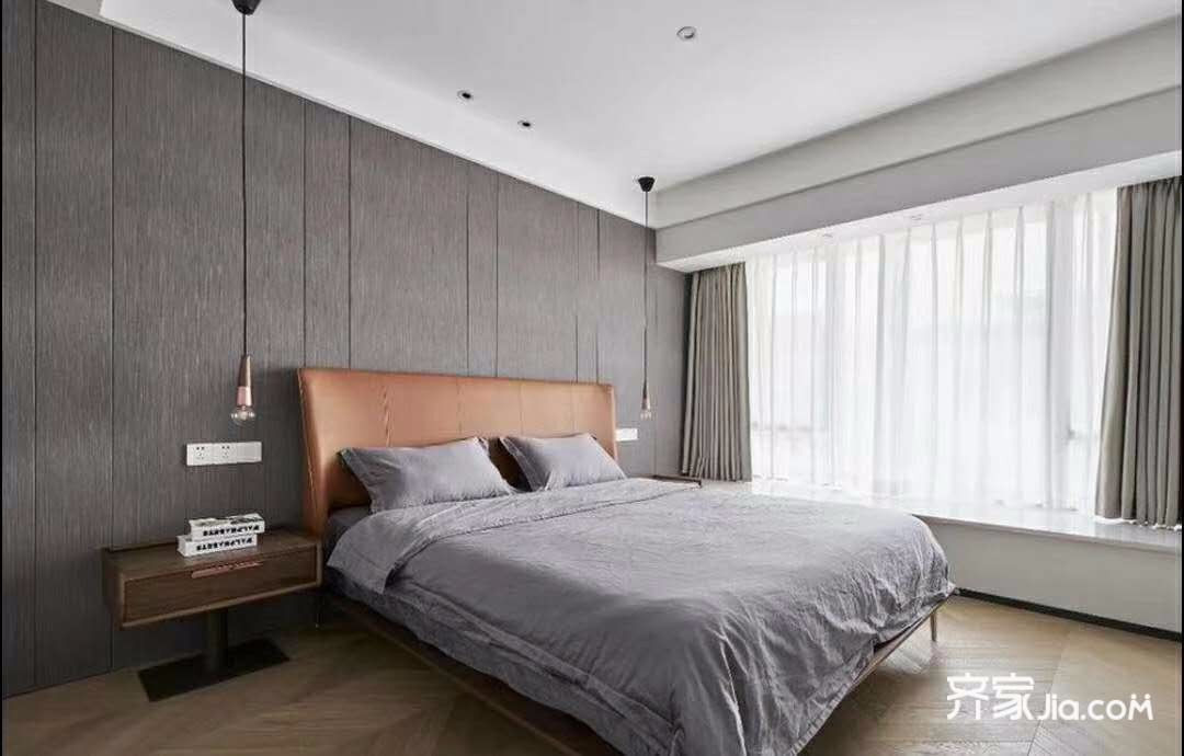 做了一个简单的床头背景,显得卧室更加的大气