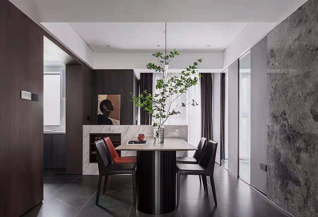 餐厅转角处铺贴大理石石材,不同的材质体现了不同的质感