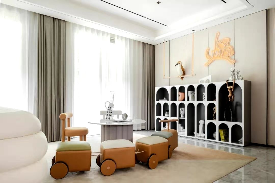 将客厅餐厅与孩子玩耍区为一体。