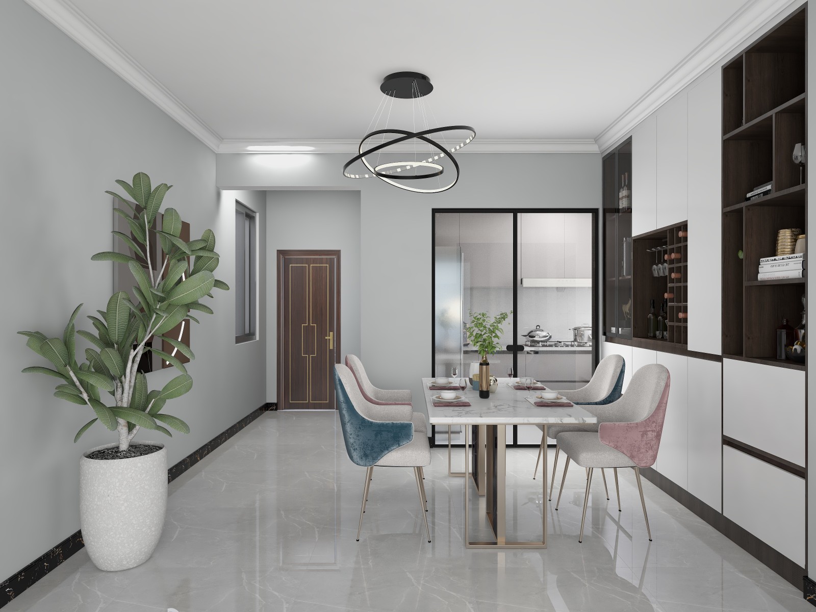 客餐厅运用大面积黑白灰,极简。
