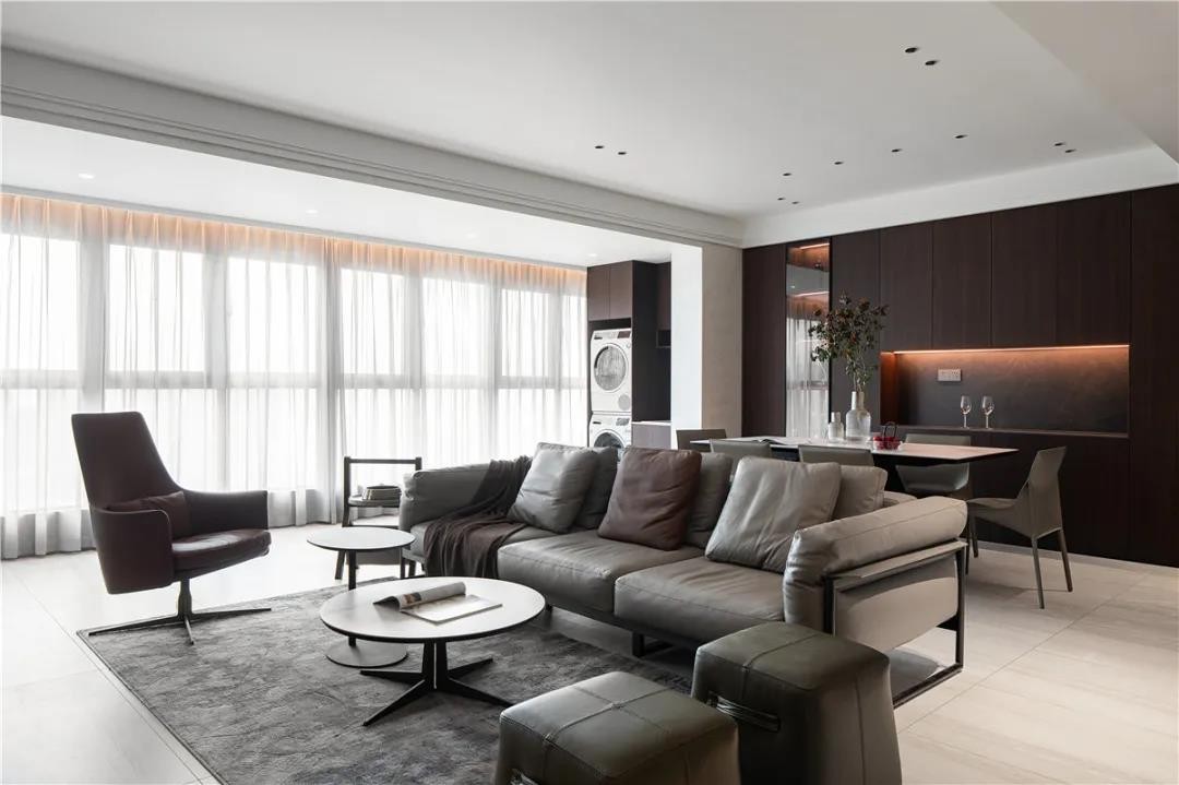 这个令人羡慕的大横厅,采光***,客厅与餐厅的结构动线更明朗,布局上设计师利用沙发方正的造型作为客餐厅之间的隔断,达到分隔空间的效果。