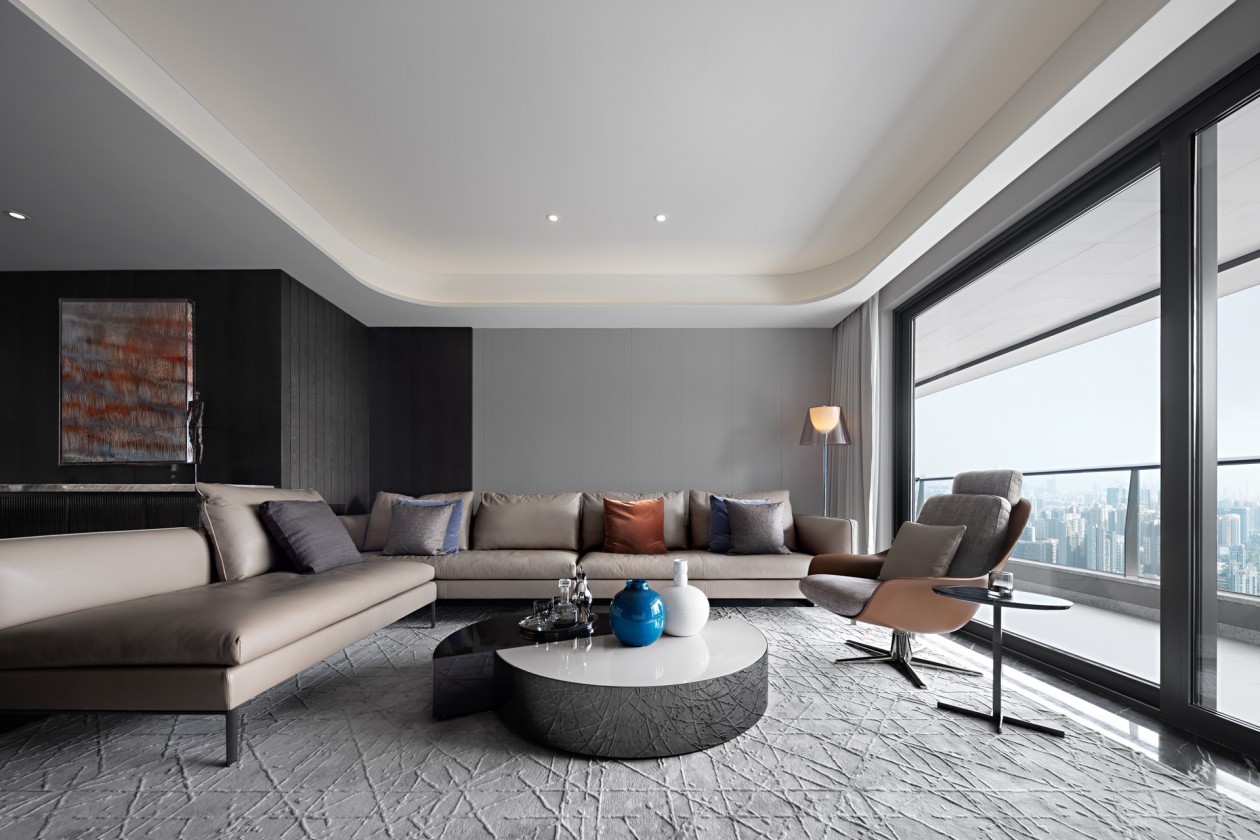 空间中辅以黑白经典配色,黑白灰在轻重、快慢、浓淡的运用变幻,浓淡相宜间是精心安排的丝绒布艺、真皮、大理石、金属材质的丰富材料,皆营造了现代住宅独有的私密与舒适性,创造一种独具雅韵与沉静洗练的格调风格。