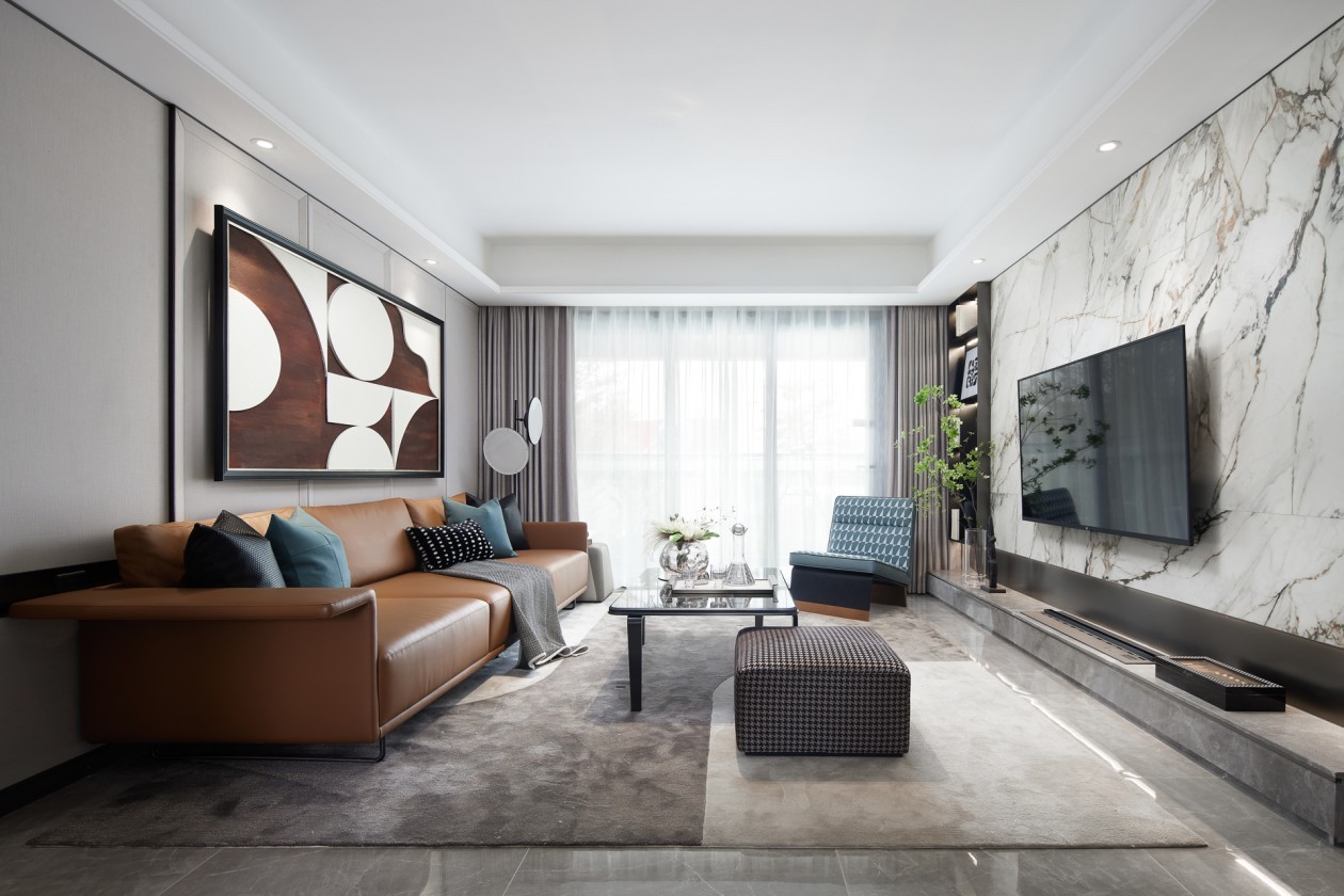 设计师将闲情、雅致的格调品味,以艺术化的表现手法融入到都市新贵们的生活空间中,材质上采用皮革、大理石、绒质面料,延续古典的优雅与尊崇,同步宝格丽经典宝石绿色的点缀,兼具时尚与优雅。