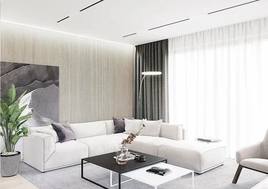 客厅内部装饰采用现代风格,采用一种配色方案,营造一种轻盈,舒适的感觉。