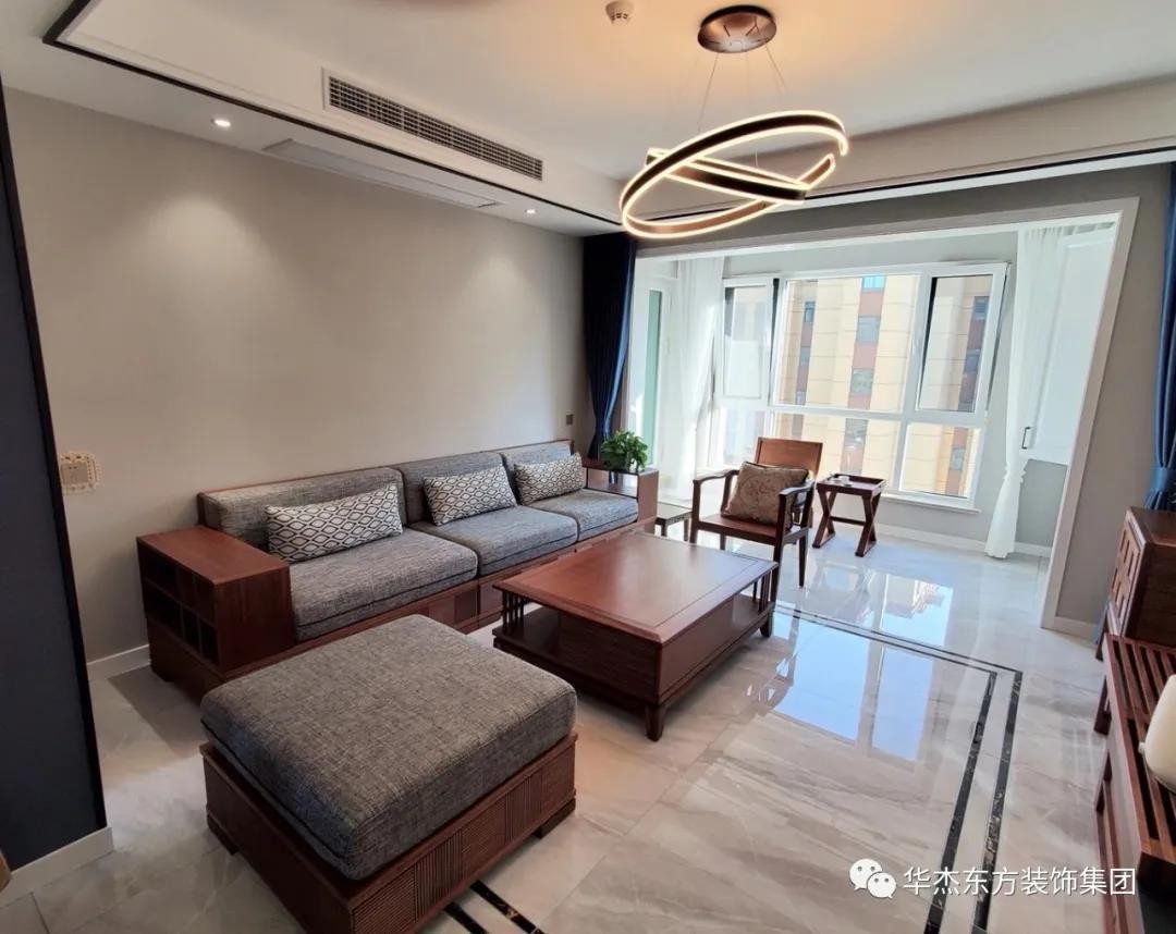 这是一套124㎡新中式风格案例,以原木色为基调,奠定了回归自然、崇尚舒适的韵味基调。