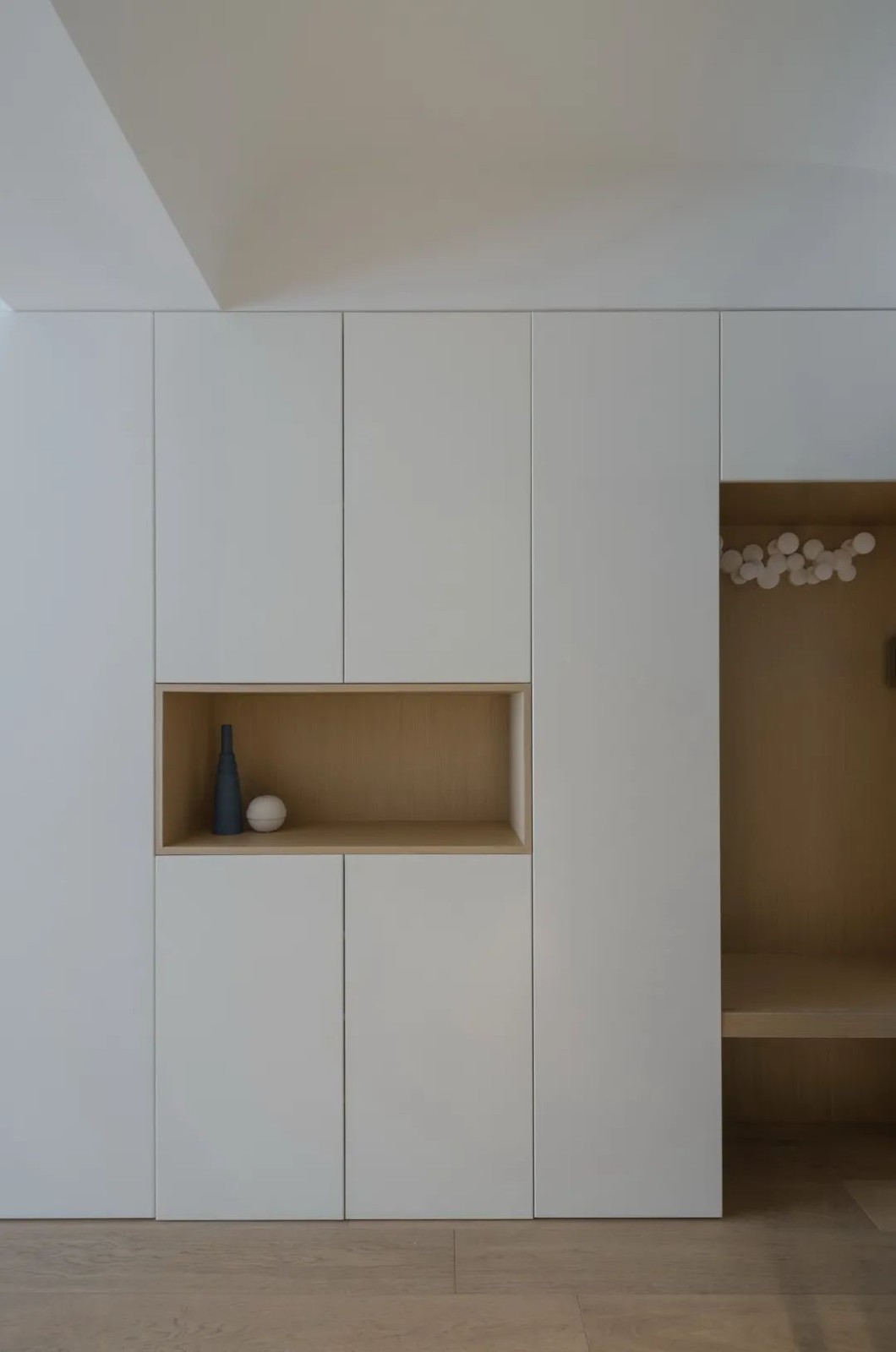 玄关+开放式厨房,小吧台即是鞋柜,也可以当操作台面。