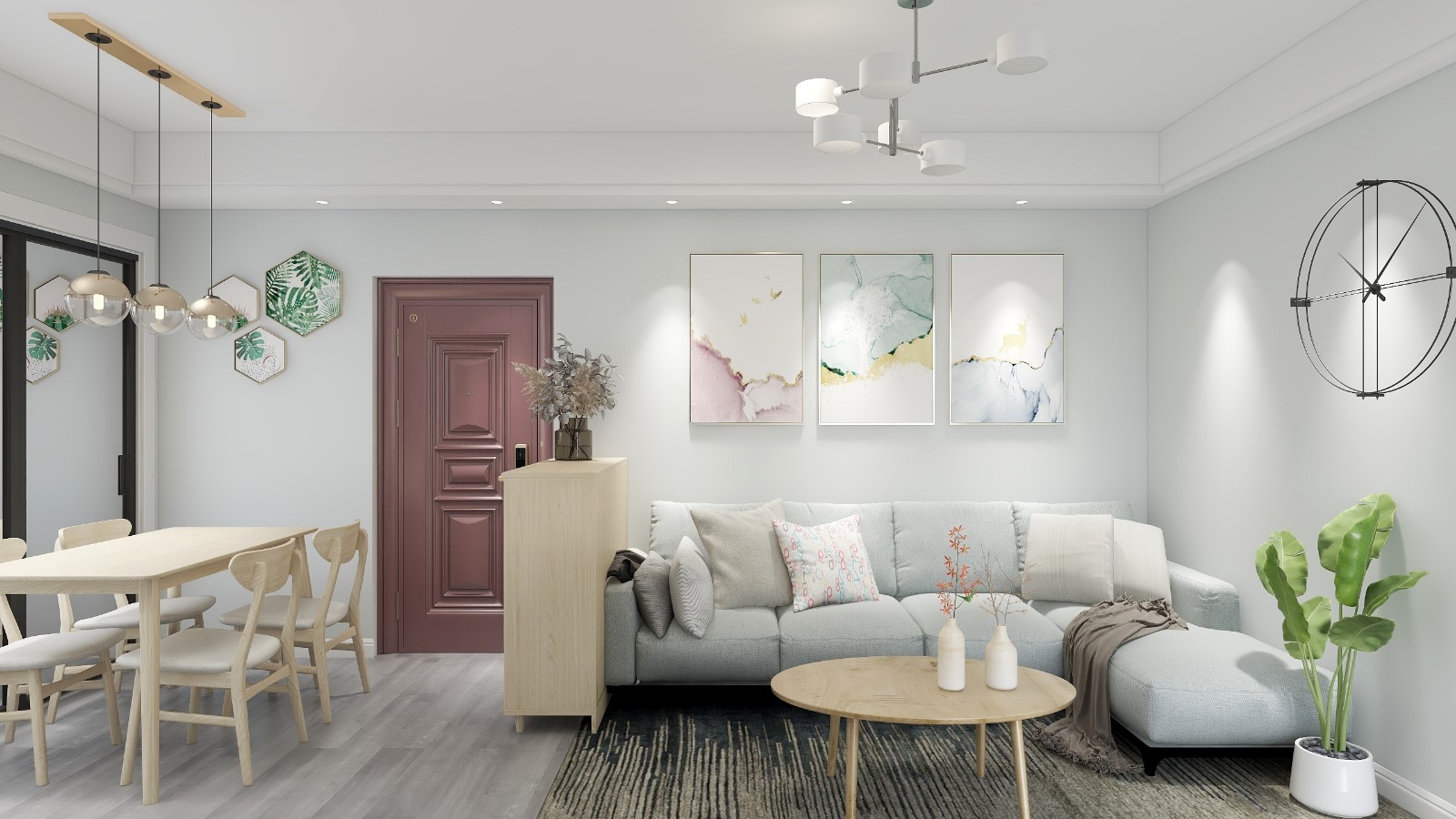 入门即见双厅,视野开阔,厨房,餐厅相连,就餐使用更加便利。