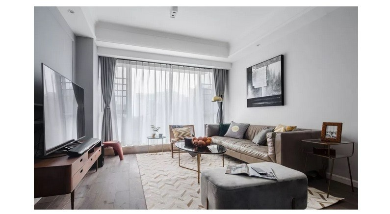 客厅以灰白色作为主调,并用细腿家具作为搭配,让空间更加清爽。