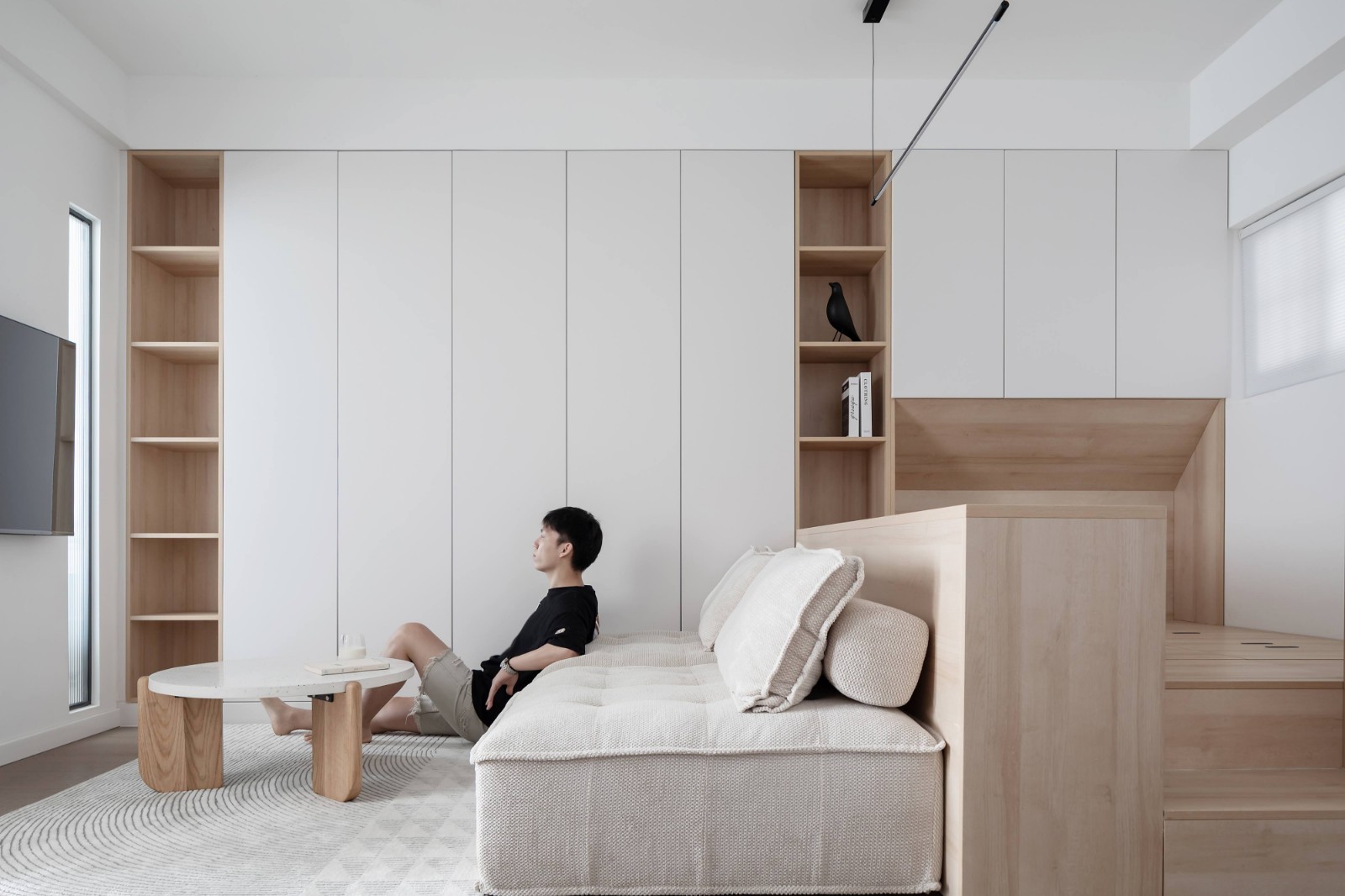 白色和原木材质贯穿整个居住空间,从而形成一种专属于家的独特气质,以一种明亮清新的视觉感受,创造出统一的美感。