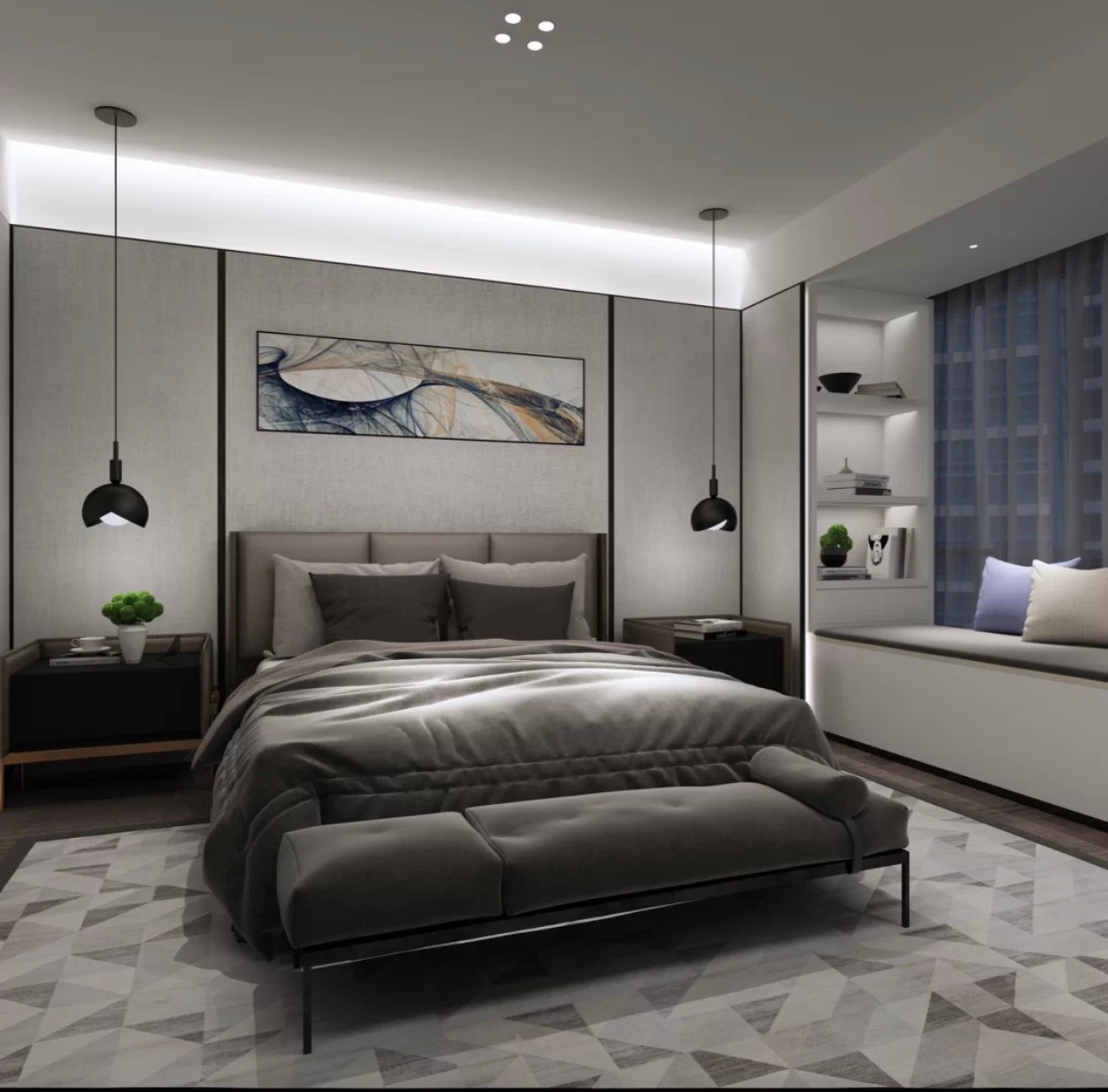 卧室无主灯设计,灯带温馨舒适光源,追寻现代潮流
