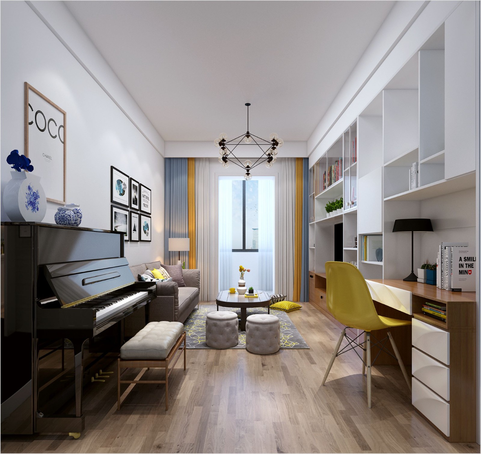 60㎡两居,现代色彩风格