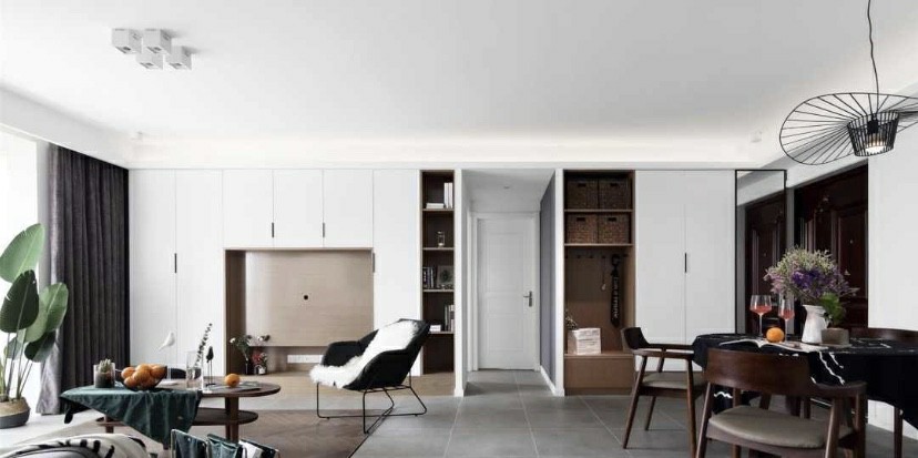 储物空间满满的背景墙。这个房子是没有玄关的,从左边的大门一进来,就是非常开阔的视野。