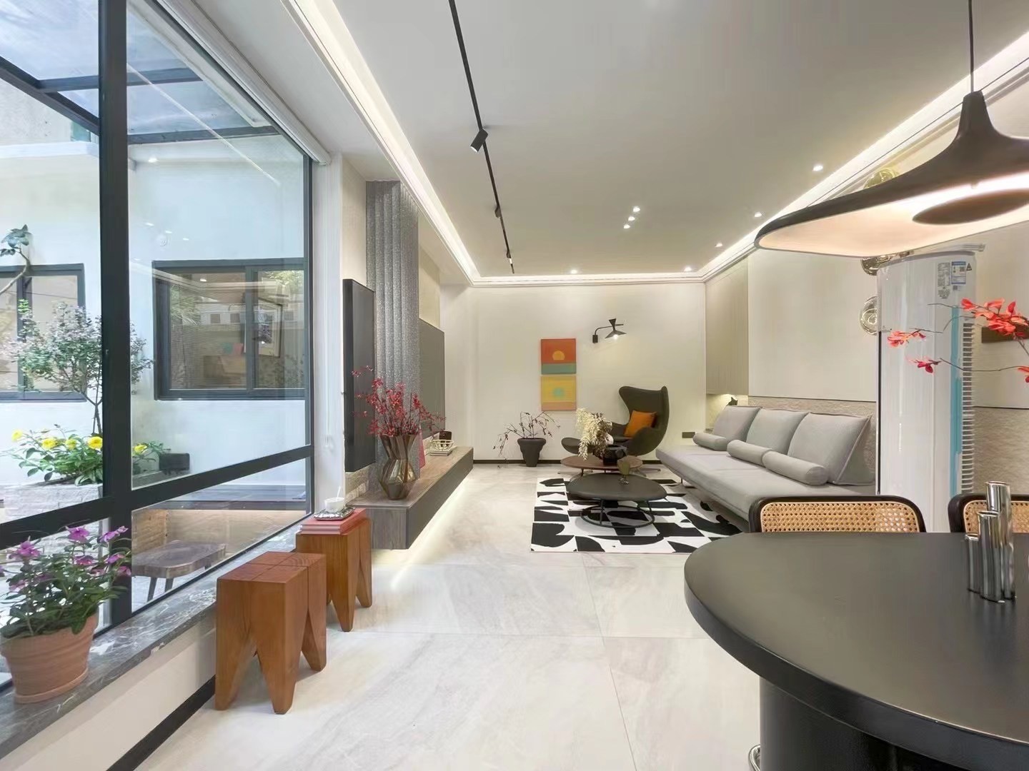 现代风格住宅,面积 93㎡, 非常宽敞且实用,设计师们利用自然光线、灯光,为室内带来通透明亮的视觉感受,搭配了大量的现代元素,以最简单的方式创造出温暖与舒适。