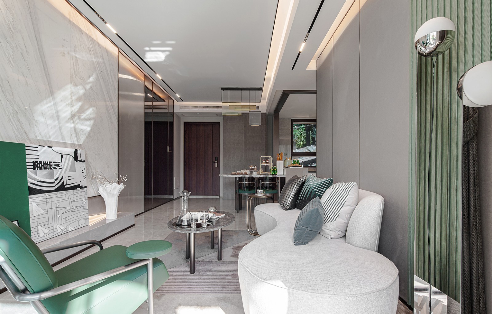 取消主光源的设计,采用暗藏灯带加线型灯槽的方式