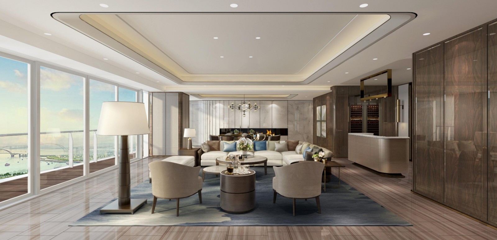 客厅采用无主灯设计。